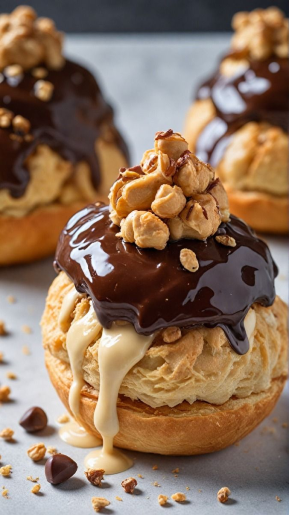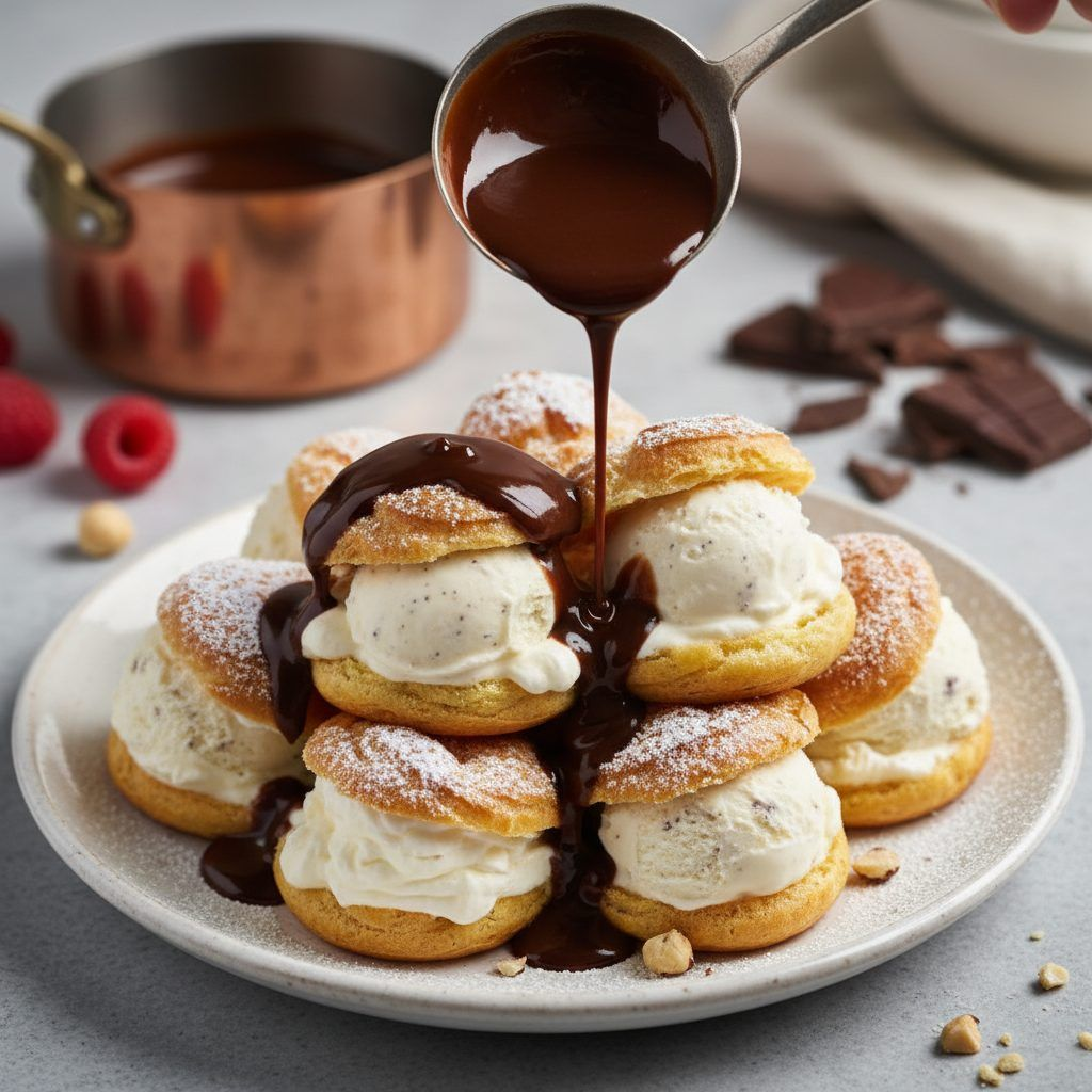 - Profiteroles – Small choux pastries filled with cream or ice cream, often drizzled with chocolate sauce.